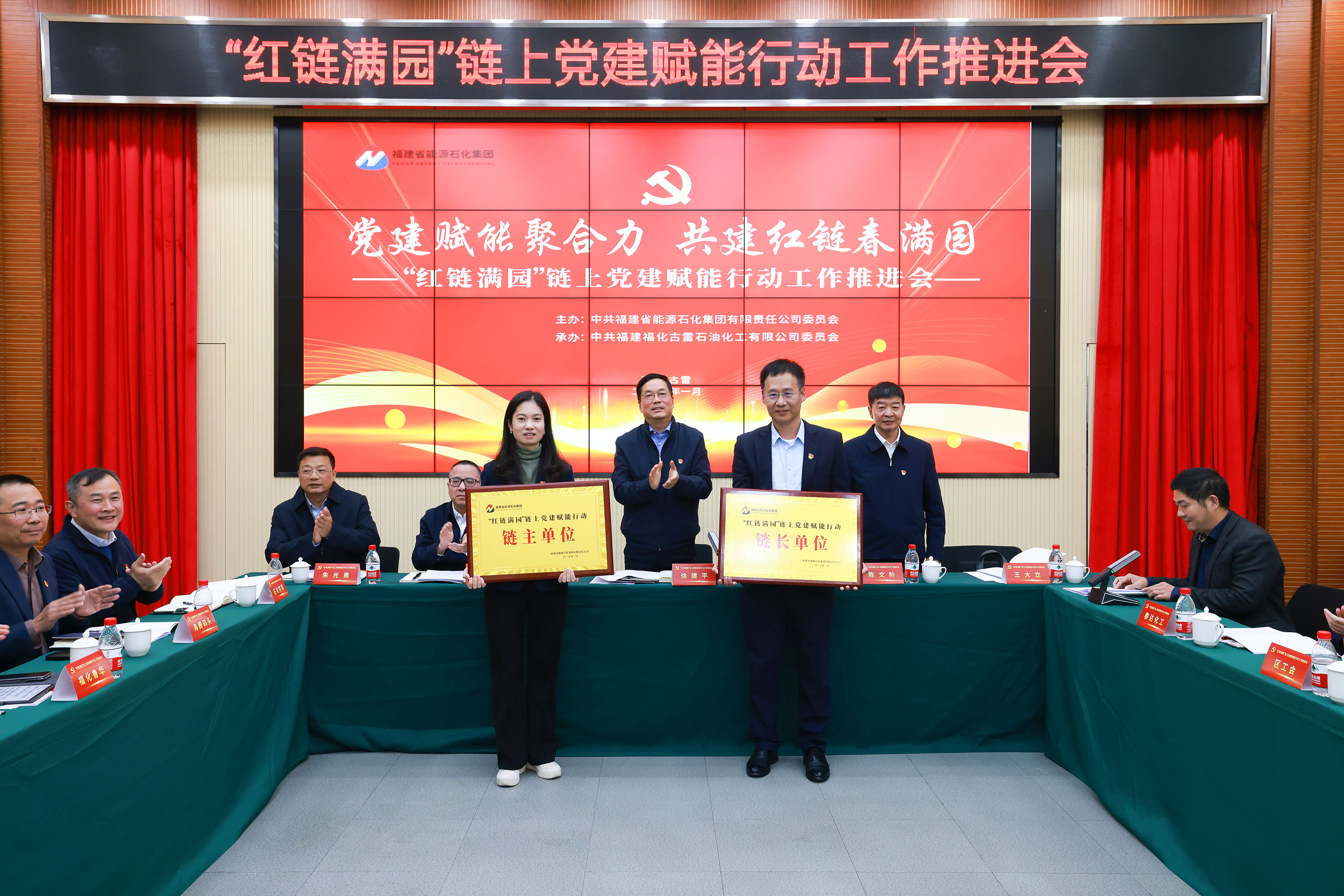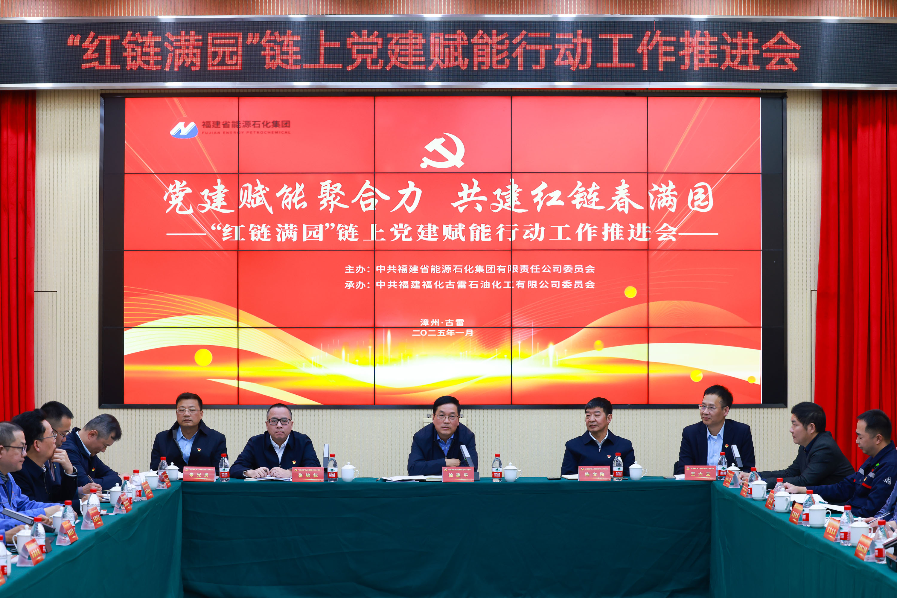 党建赋能聚合力,共建红链春满园。1月9日,福建能源石化集团“红链满园”链上党建赋能行动工作推进会在漳州古雷召开。福建能源石化集团党委书记、董事长徐建平,党委委员、副总经理陈文阶;古雷开发区党工委副书记、管委会副主任张锦标,党工委委员、管委会常务副主任朱光勇出席会议。
