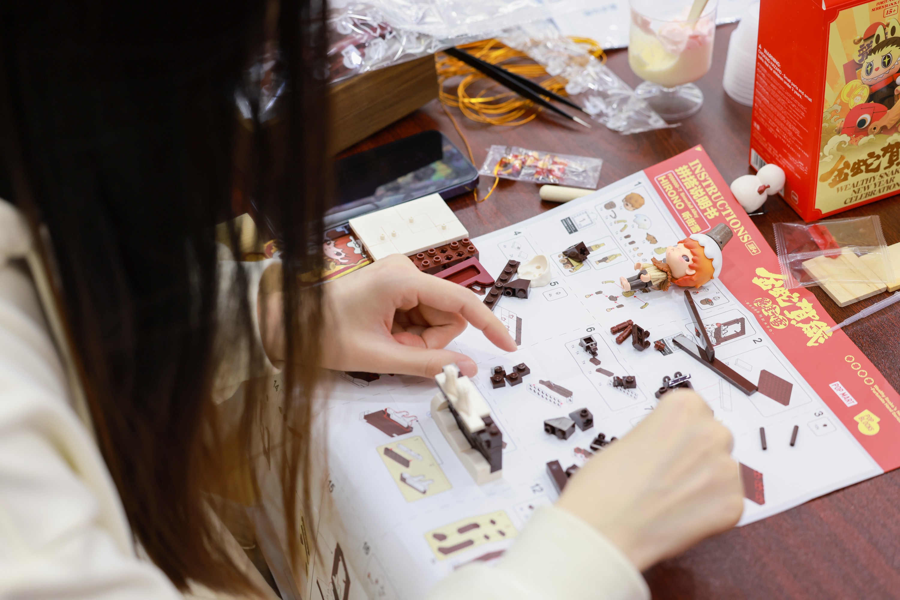 在金蛇贺岁积木拼搭环节,女职工们随机抽取积木盲盒,以巧手拼搭积木,从观戏园、年味铺、纸鸢坊、花灯亭、辞旧岁等主题款式中,感受着中国传统文化的魅力。